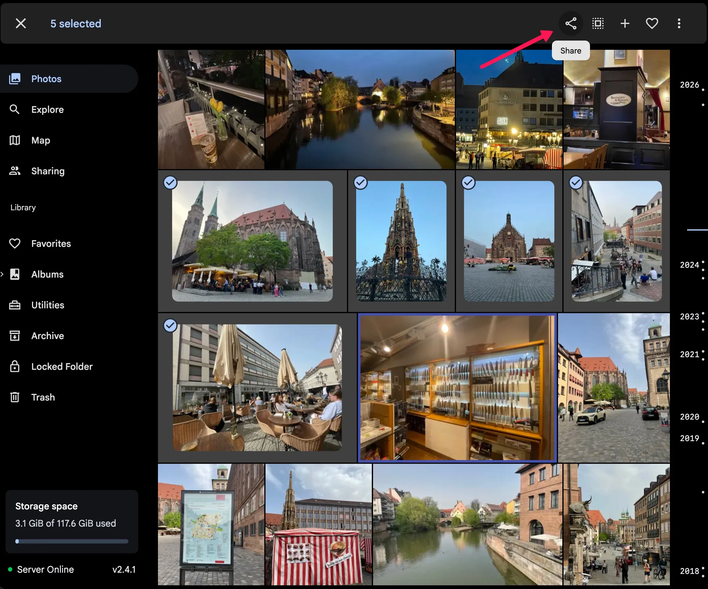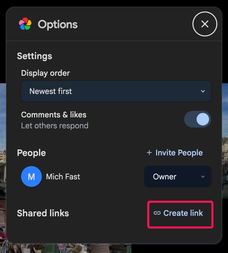 You can create a public share link by selecting the photos or videos, or from the share icon on an album.